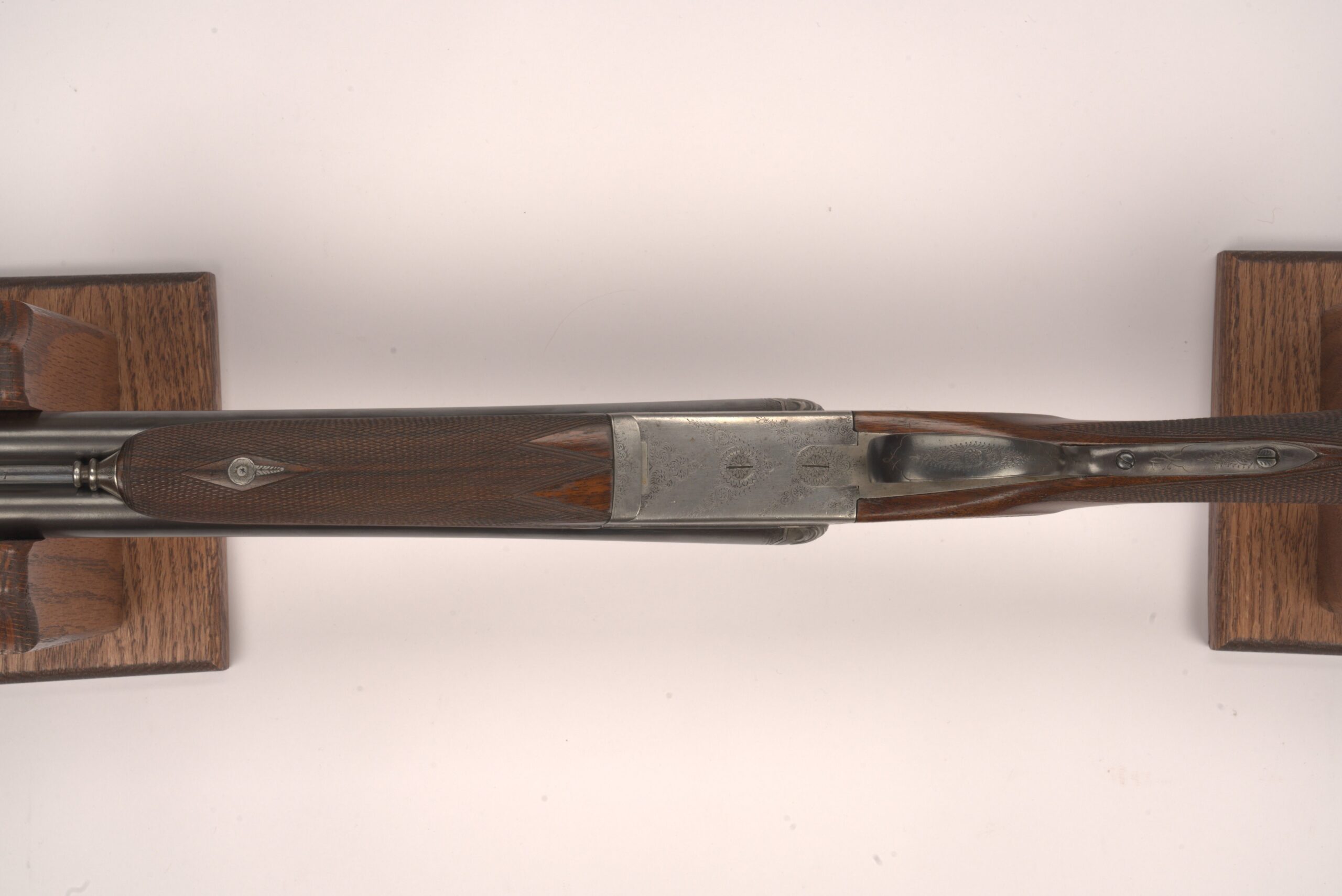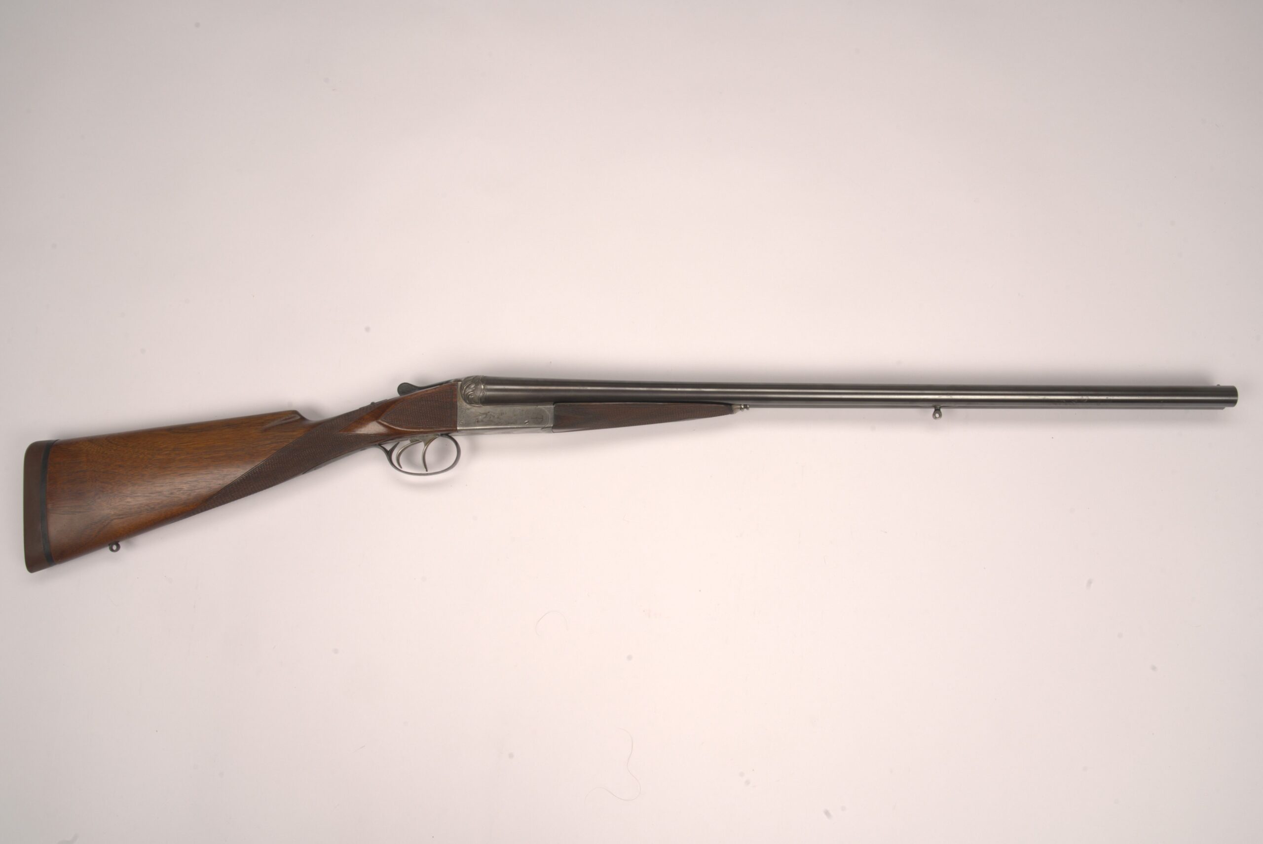 -Barrel Damages: Minor fading in the bluing around the action. One minor dimple on the LH barrel close to the bead followed by a hand full of very minor scratching on both barrels.
